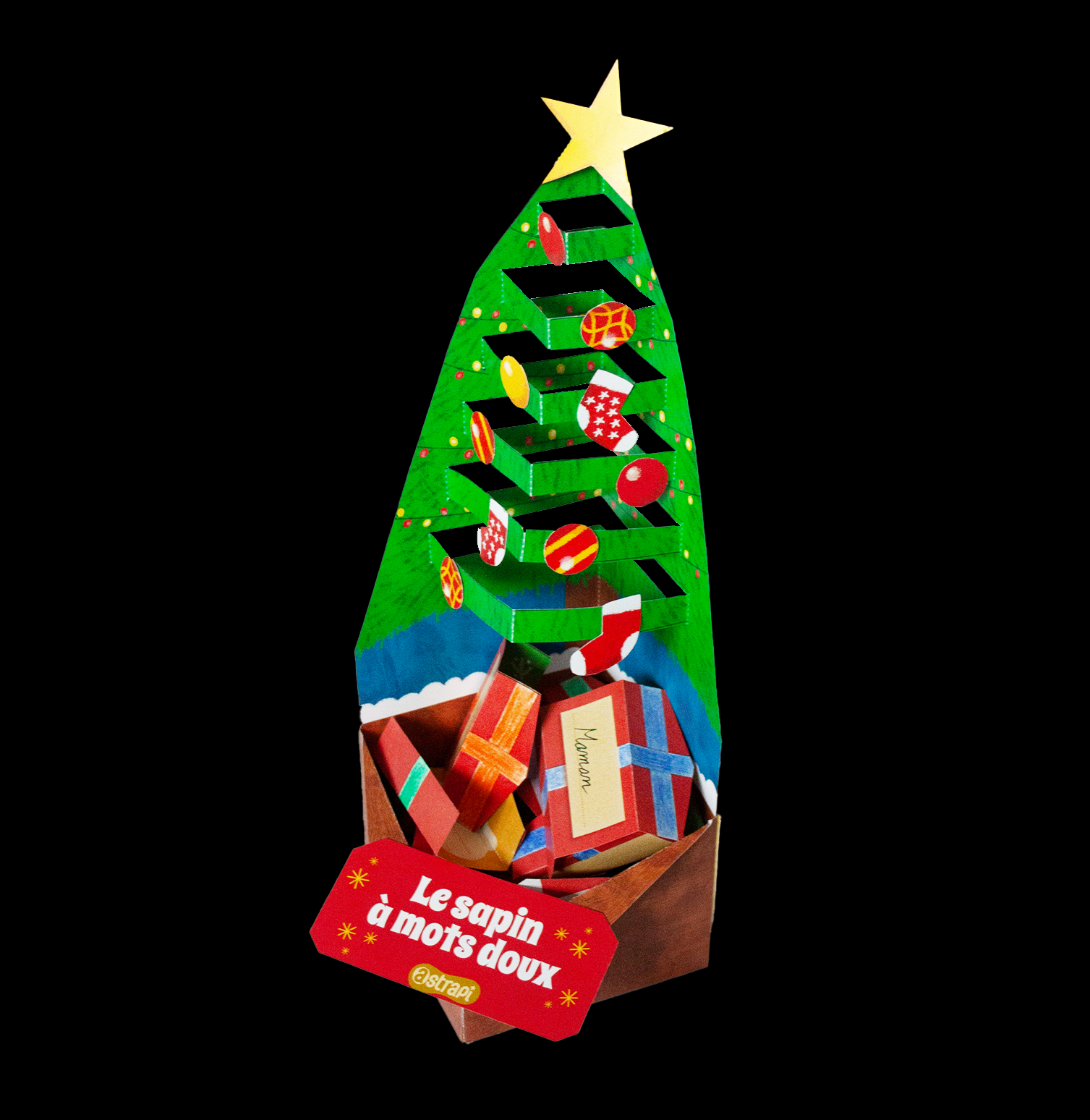 Conception de la carterie du numéro 1069 : un sapin à mots doux à monter soi-même