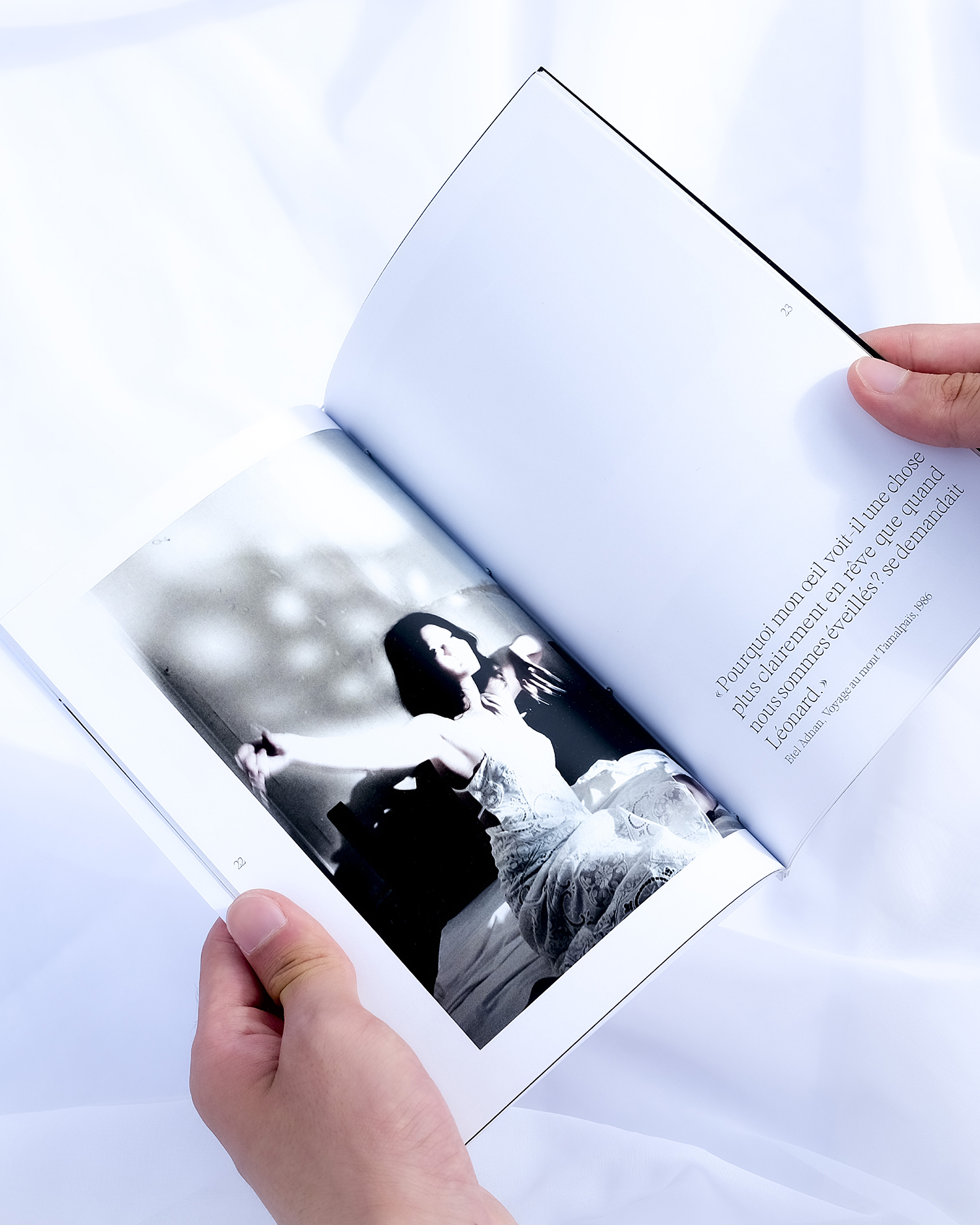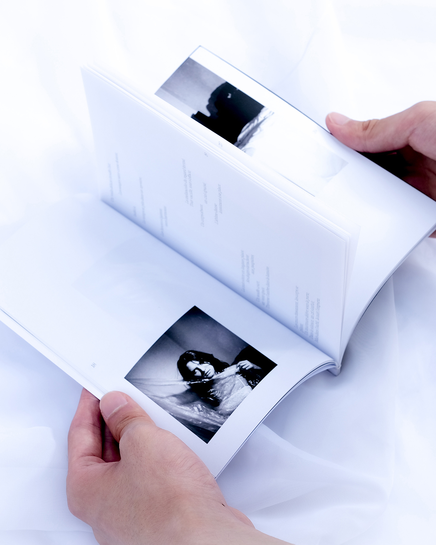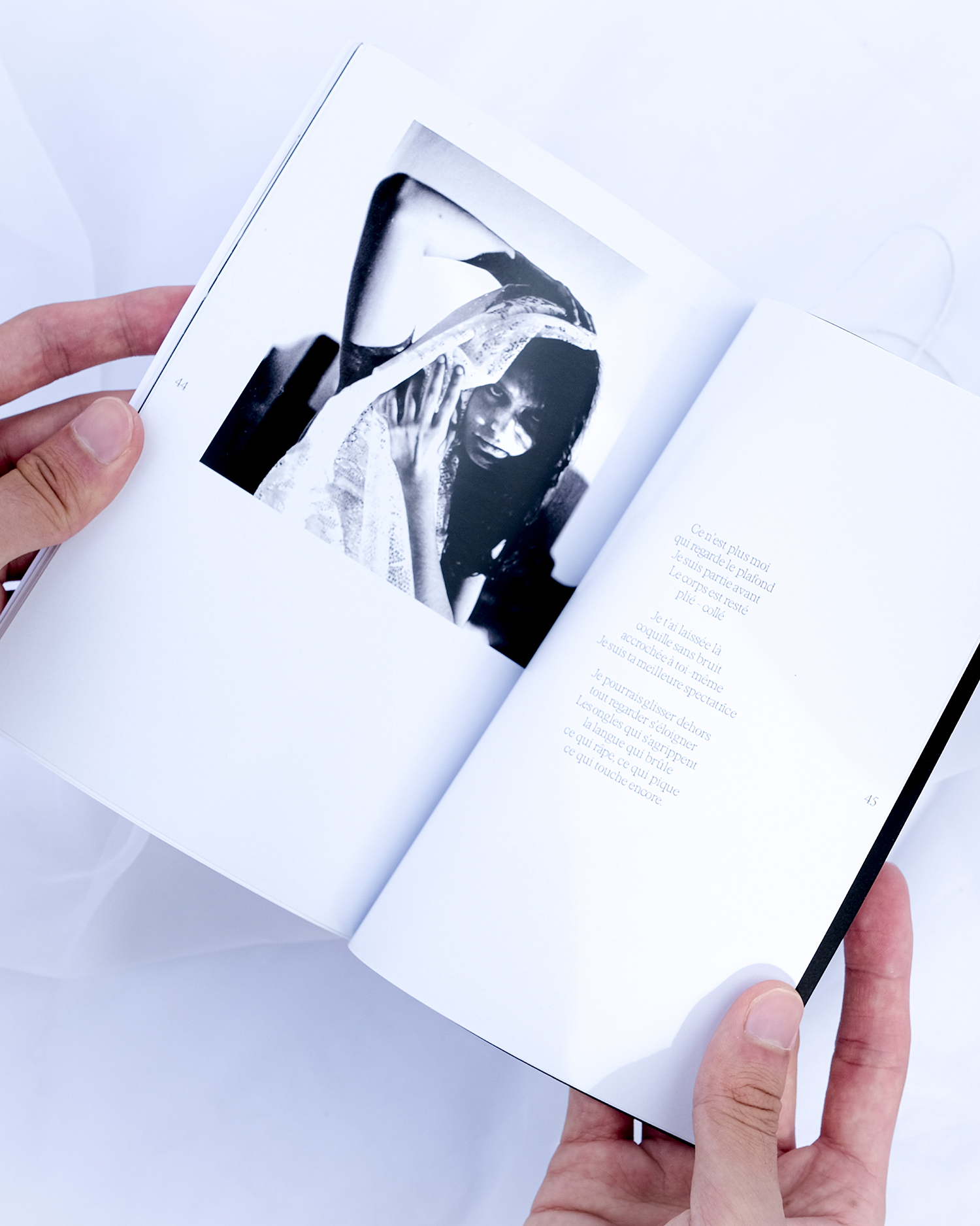 La dissociation est un phénomène psychologique qui peut survenir suite à un ou plusieurs traumatismes. Pour préserver survivre au choc de l’organisme, le cerveau « coupe » les fonctions non-vitales. Ce projet explore la complexité des états liminaux et d’une perception fragmentée de ses propres souvenirs. Dans un espace suspendu entre veille et sommeil se dessine une quête de soi à travers les plis du corps, les ombres, les silences. Dans cette édition poétique, nos poèmes et photographies rencontrent des citations d’auteurices, entre images fragmentées et voix multiples.