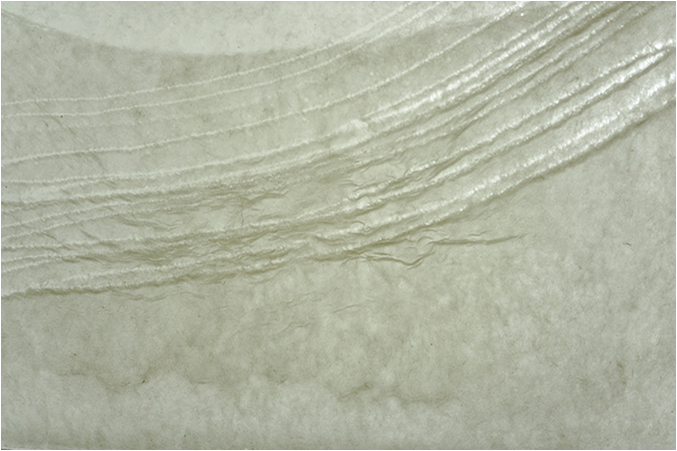 À partir des techniques et démarches que j’ai découvertes dans mon mémoire, j’ai appris à fabriquer du papier à la main à base de fibres longues de kozu et de lokta, qui donnent un papier naturel, très fin et résistant. L’avantage de ce papier est qu’on peut le recycler 5 à 6 fois sans produits chimiques.